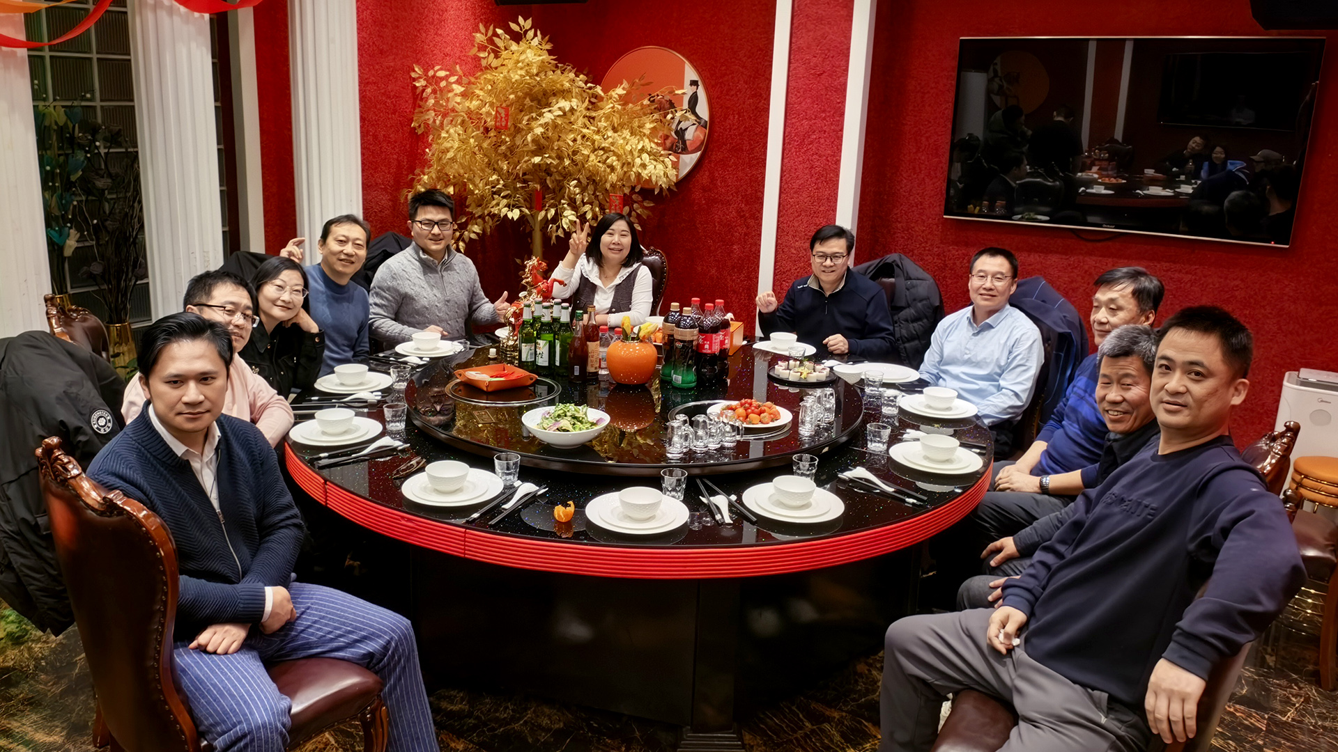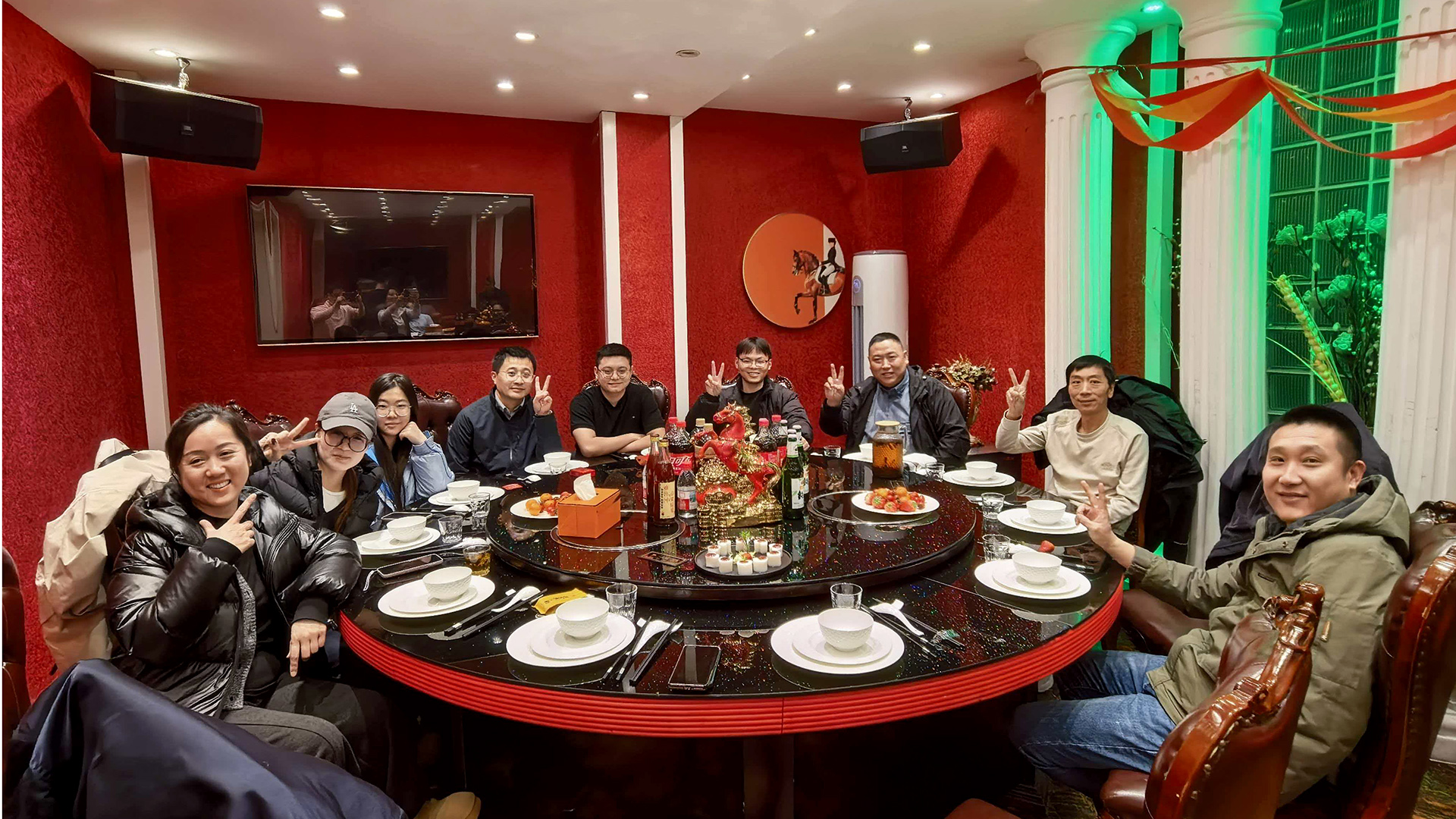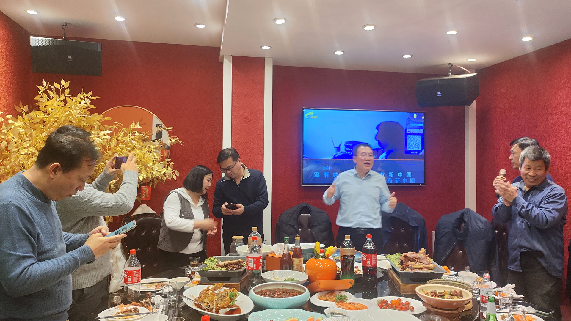 晚宴的最后,全场起立,共同唱响《没有共产党就没有新中国》。铿锵的旋律中,所有人目光坚定,紧握拳头——这一刻,家国情怀与团队精神交织共鸣,为这场迟来的宴会画上了最圆满的句号。
